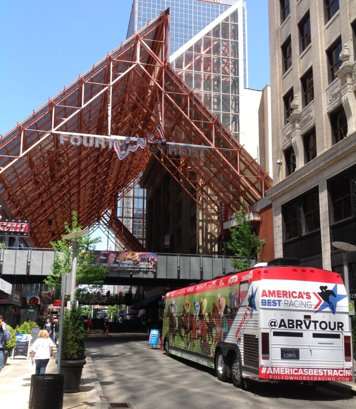 Our lone stop in Derby City on Tuesday was at Fourth Street Live!, which is Louisville’s premier downtown entertainment venue. During Derby week and for other big events, the entire block of Fourth Street is closed to vehicles, except the ABRV managed to get a prime parking spot inside. We got a strong amount of media attention in the morning, getting interviewed by local radio and TV stations in the area.