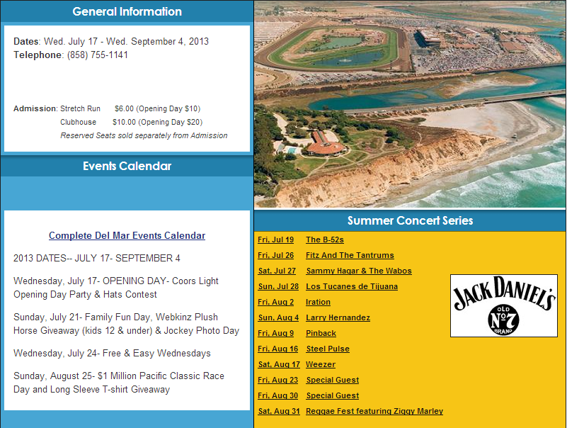 Wednesday is opening day of the heralded Del Mar race meet near San Diego, CA. The 74th annual race season will offer 37 days of live racing through September 4, with the highlight coming in the form of the $1 million TVG Pacific Classic (G1) on Sunday, August 25. I have always read and heard about Del Mar and could not be more excited to get out to San Diego as our ABRV Tour bus will arrive on August 20.