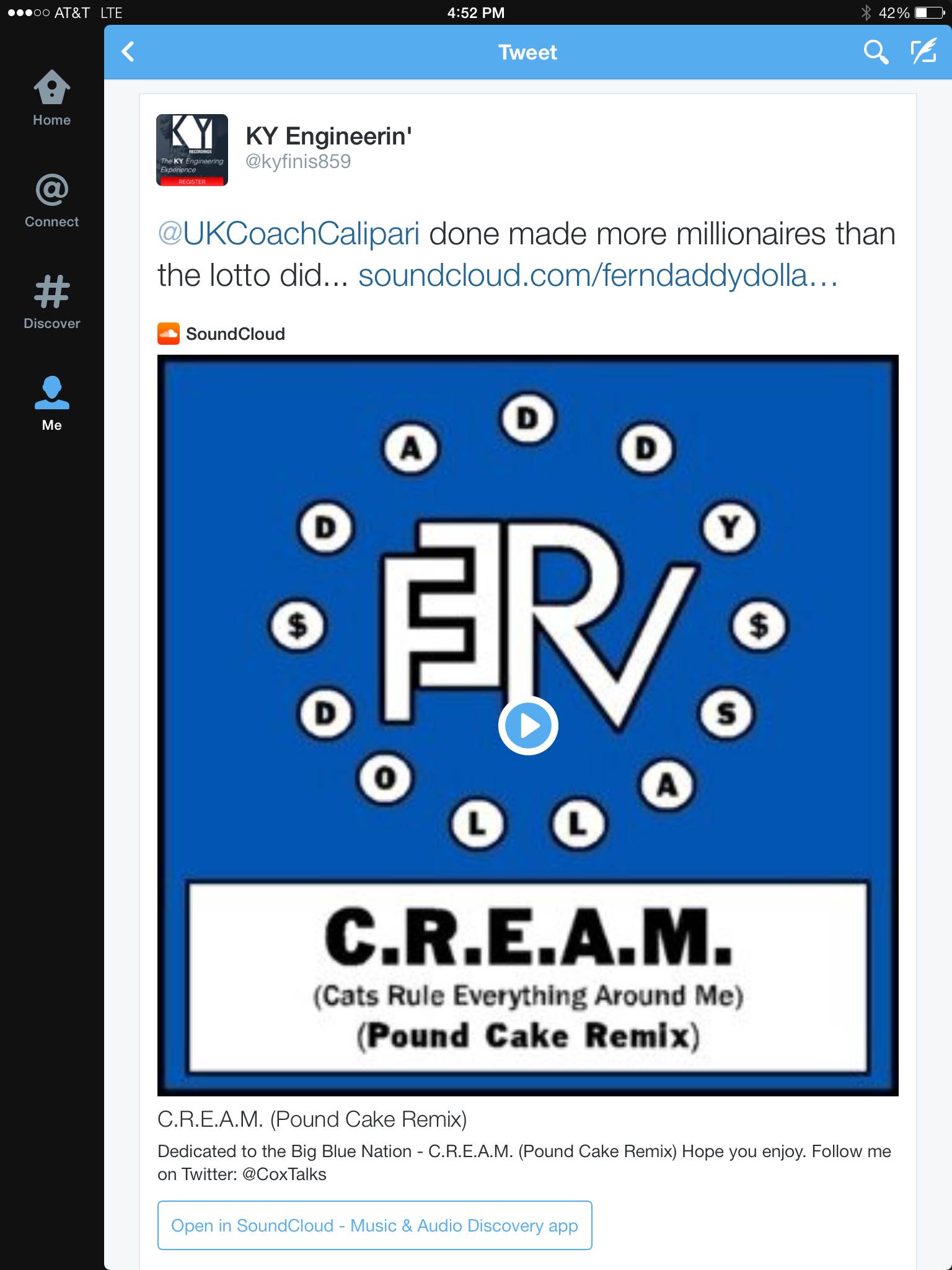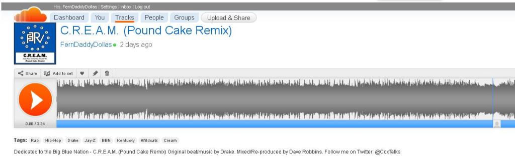 So on Drake’s 2013 CD, Nothing Was The Same, Drake features a song titled, “Pound Cake” that features Jay-Z. So I decided to re-write the lyrics to the song, and scheduled an appointment with my family friend Dave Robbins, who has a solid recording set-up in his basement in Lexington. Here is the link to “C.R.E.A.M. – Pound Cake Remix” by me, Fern Daddy Dollas: