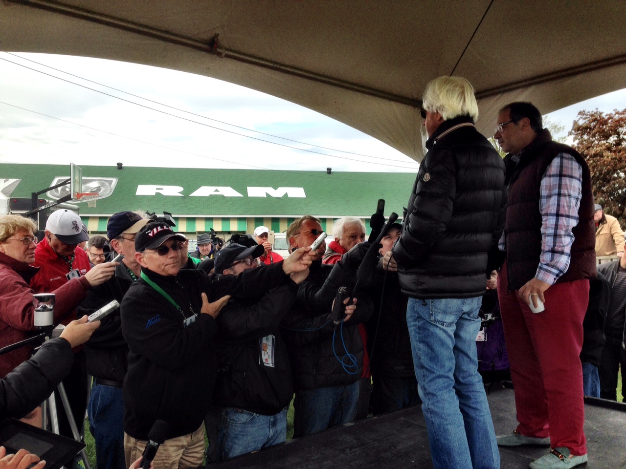 A pack that numbered nearly 70 reporters and cameramen migrated to a tent-covered podium near the track and waited for Baffert and Zayat to take the stage. Both appeared pleased with the workout.
