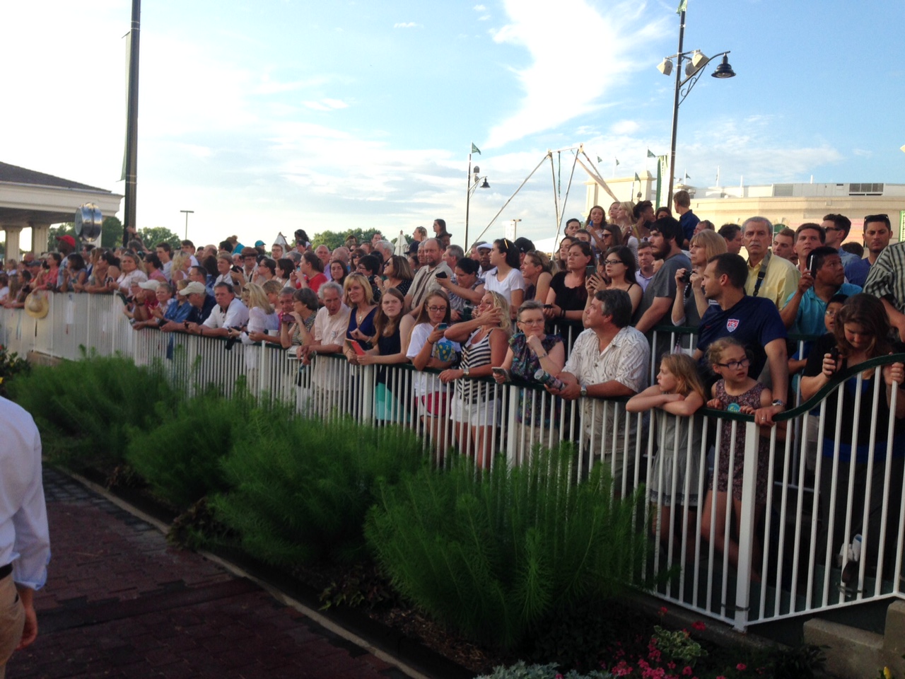 The Kentucky Derby had been run just six weeks earlier, yet fans still swarmed. Several lined the paddock in multiple rows, and all the way up and into the tunnel, just hoping to get close enough to capture the moment in the form of a cell phone picture. Others from farther away in the grandstand were moving in towards the center and up as close to the track as possible, because they knew if those closer seats weren’t occupied by now, that their rightful owners weren’t coming.