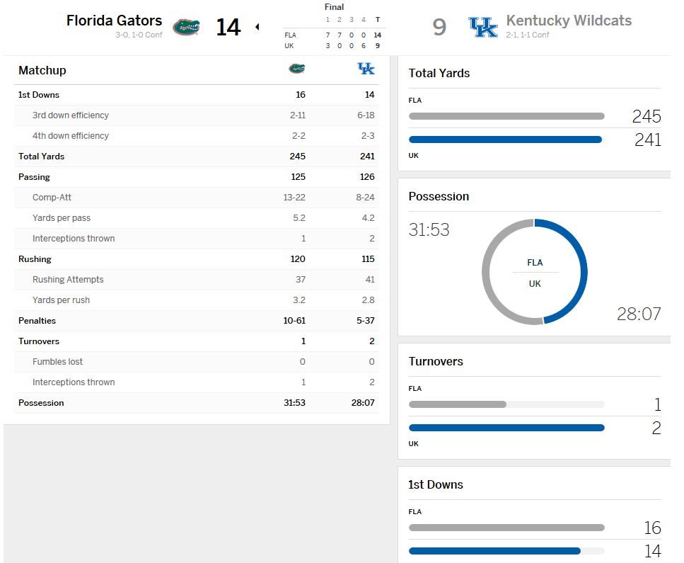For Kentucky fans, this was the game we had circled during the off-season. After squeaking out the first two wins in the face of some adversity fans were confident that, against Florida, this was UK’s best chance to end the nation’s longest-running losing streak.